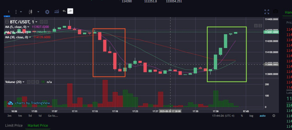 I took advantage of the Bitcoin rebound, and within three minutes, Bitcoin went up and I made a profit.